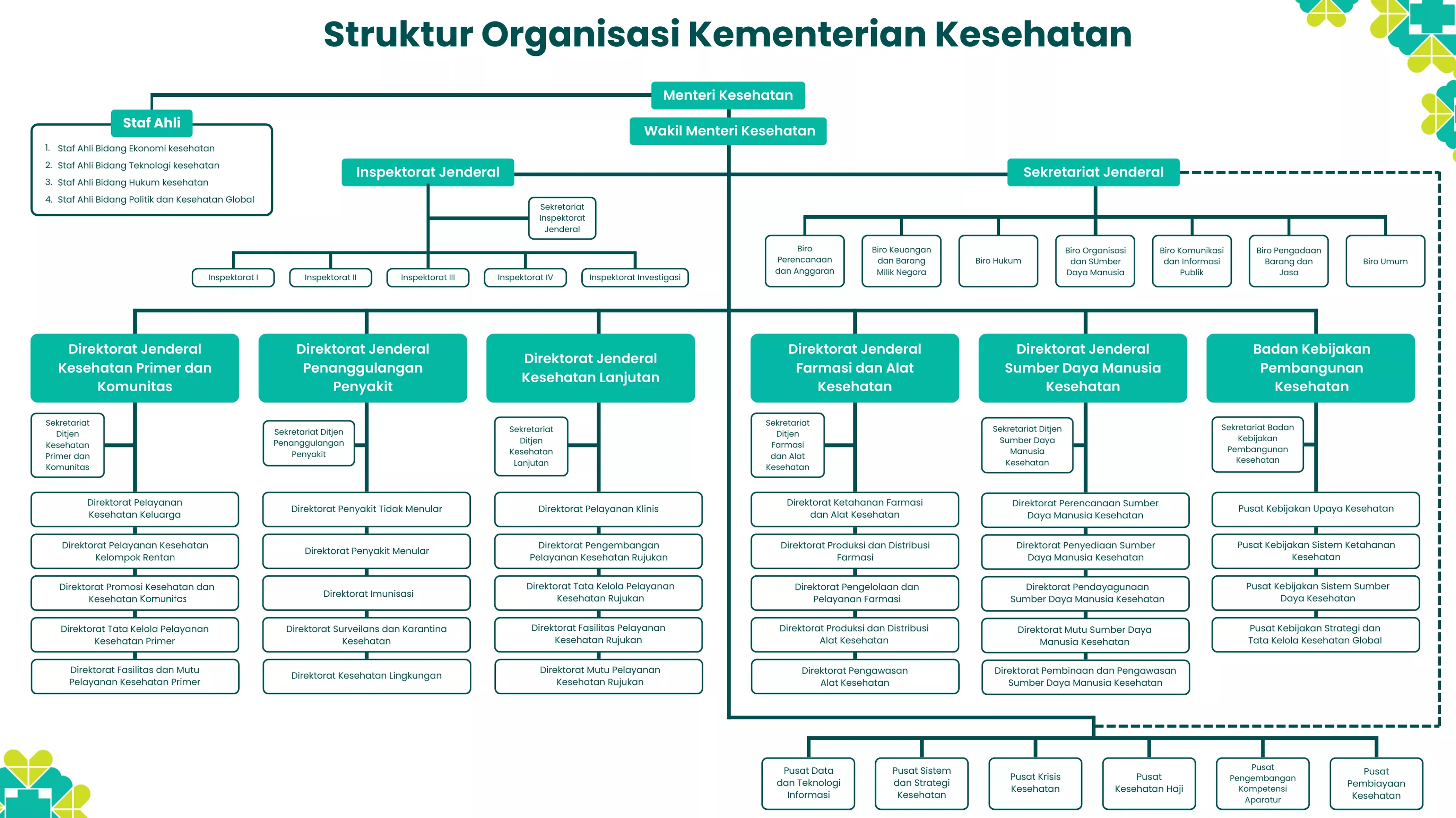 Berdasarkan Peraturan Menteri Kesehatan Republik Indonesia No. 21 Tahun 2024 Tentang Organisasi dan Tata Kerja Kementerian Kesehatan